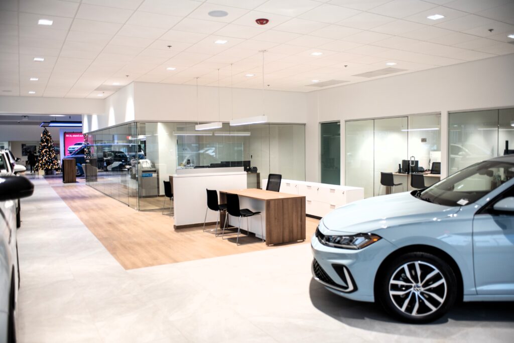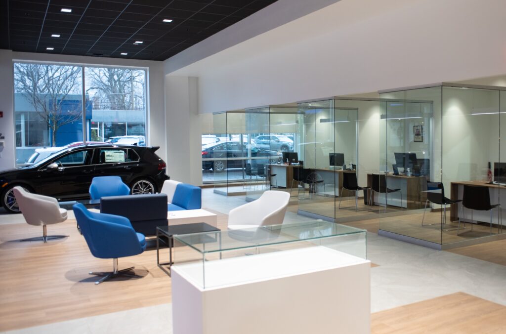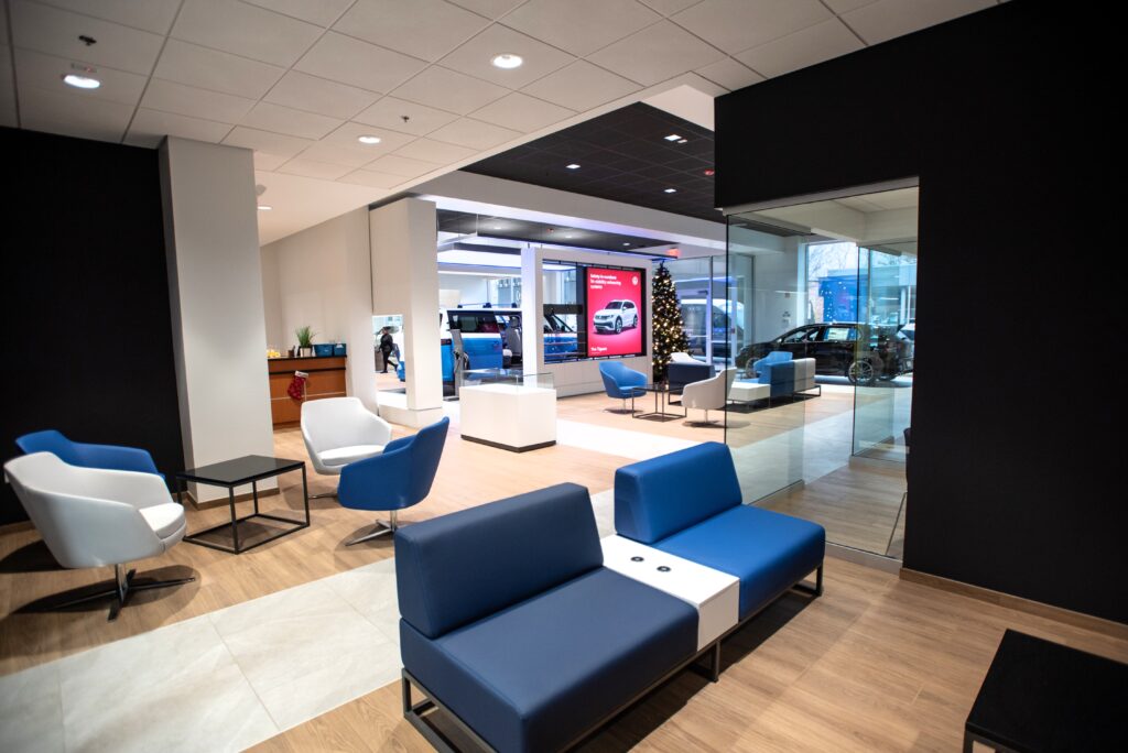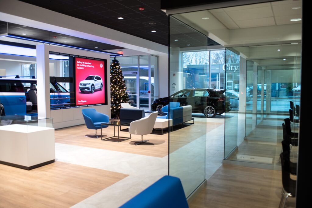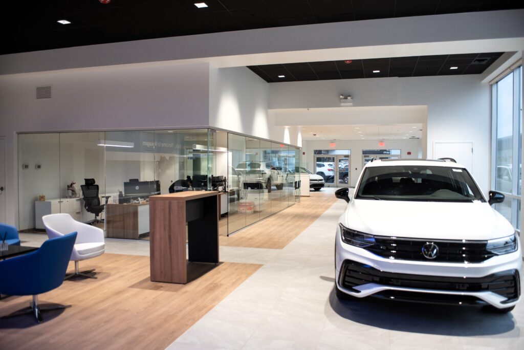Peter Schwabe, Inc. completed the remodel of this 8500 square-foot City Volkswagen showroom and 1350 square-foot Service Department reception area while keeping the dealership fully operational throughout the construction process.