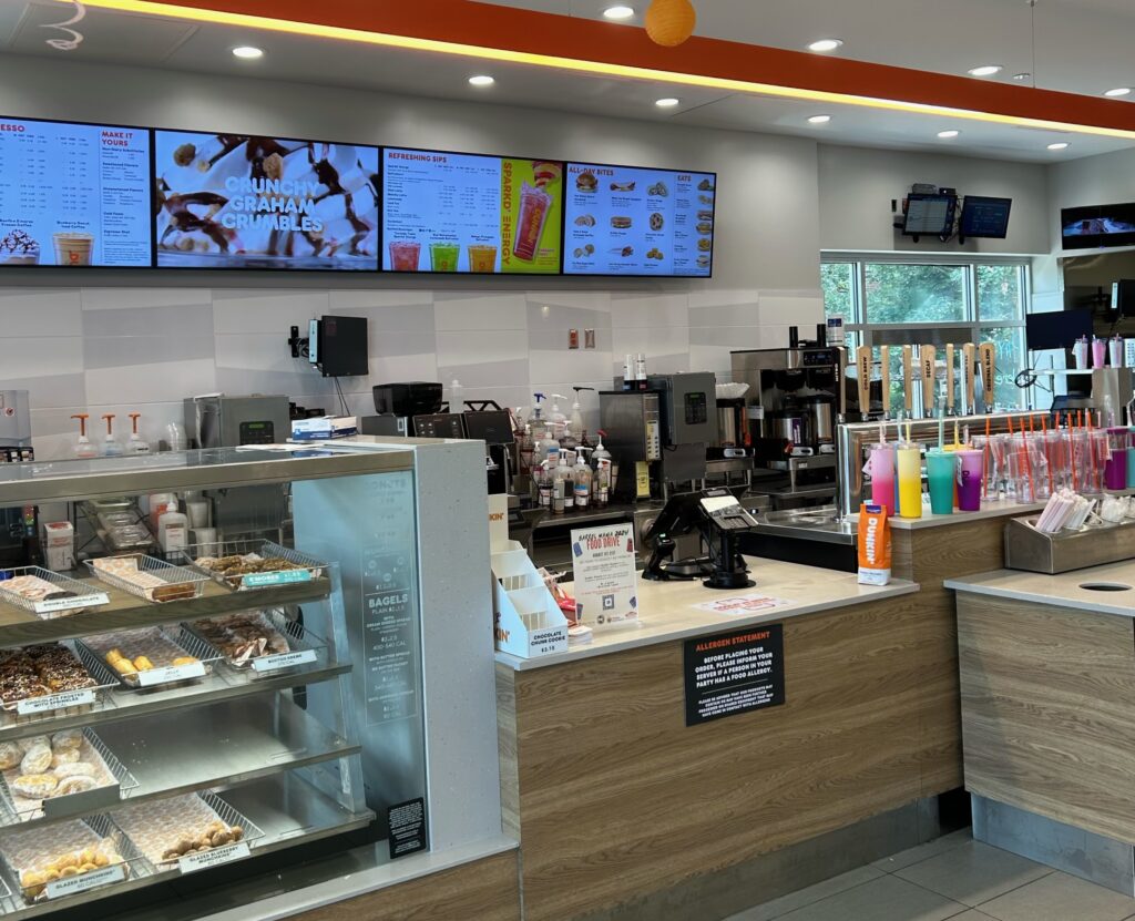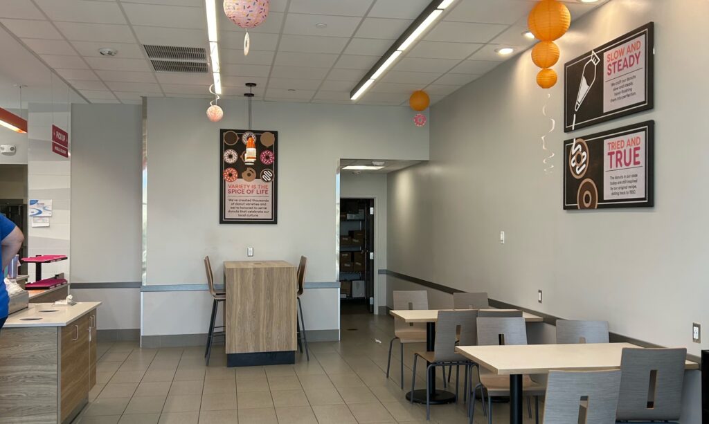 Peter Schwabe, Inc. completed this 1900 square-foot Dunkin' restaurant in Mequon, WI. The space features the company's new brand colors and elevated customer conveniences.
